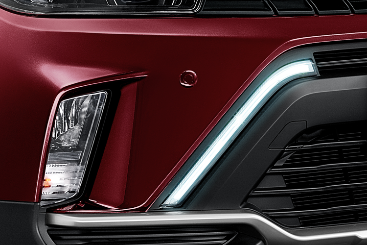 Dimulai dengan desain eksterior Front Grille dan Bumper yang modern dan stylish. Tampilan ini juga didukung dengan desain lampu depan yang dilengkapi projector headlight dalam mempermudah pengaturan pencahayaan lampu serta Daytime Running Light Untuk memancarkan cahaya yang akan menyala pada siang hari untuk memberikan informasi kepada pengguna jalan lain.